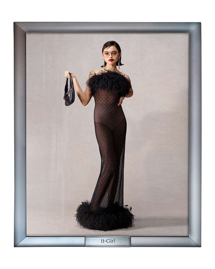 Aquí nos encontramos con una galería de personajes que podrían protagonizar una película de Sorrentino con un toque de Almodóvar. Está la 'diva' envuelta en un vestido de noche con plumas hasta el suelo, la 'nonna milanesa' con un abrigo de piel de tigre (sintética, por supuesto) de hombreras marcadas que grita poder, el 'nerd' con un chic inesperado, e incluso una figura bautizada como 'El Bastardo', ataviado con un provocador bikini. Demna no solo observa la sociedad, la cataloga y la viste, creando un universo donde cada look cuenta una historia.