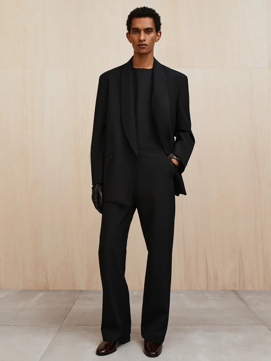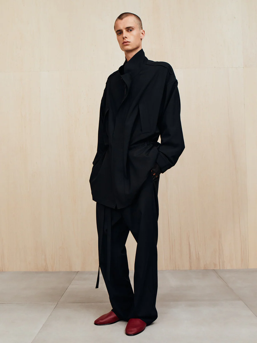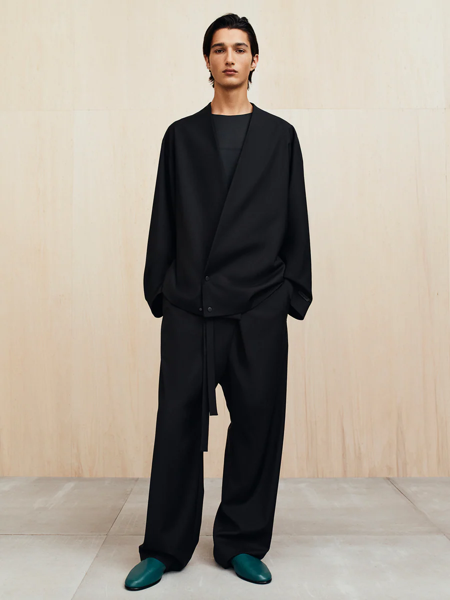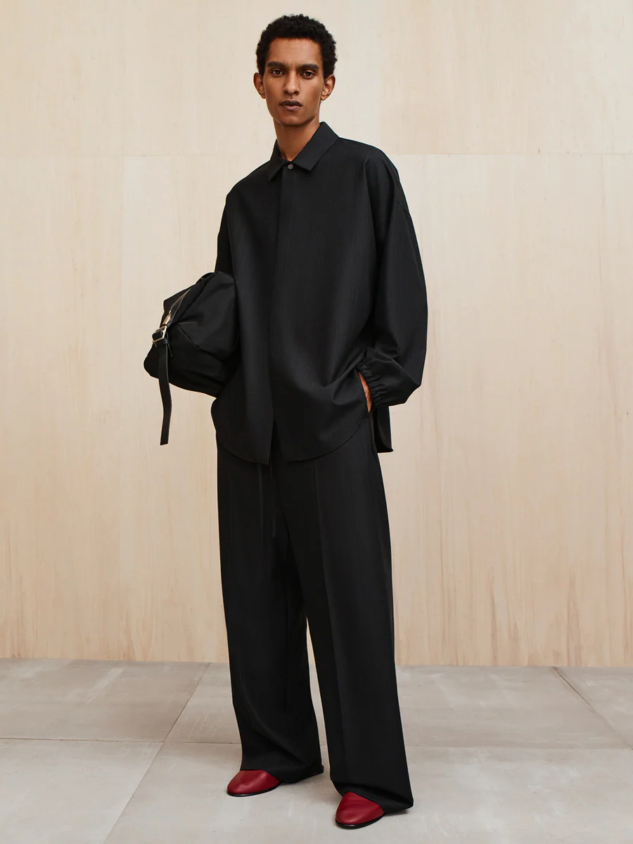Esta filosofía se traduce en una elegancia discreta. La colección es un ejercicio de equilibrio, donde la sastrería y el sportswear se mejoran mutuamente. Piensa en trajes de una caída impecable, confeccionados en lana italiana o en tejidos técnicos ripstop, pero con siluetas relajadas que te permiten moverte, vivir. Los hombros son redondeados, evocando la forma de una chaqueta de béisbol clásica, eliminando cualquier rigidez y apostando por una comodidad que roza lo espiritual.